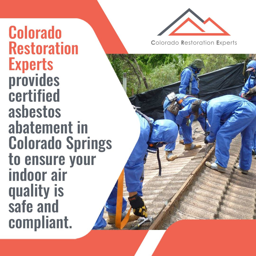 For professional abatement of asbestos in Colorado Springs, contact Colorado Restoration Experts at (719) 633-3700 or email tim@coloradorestore.com.